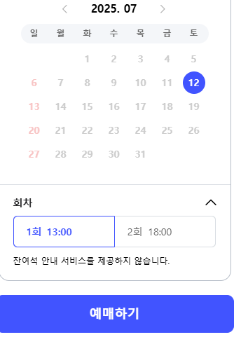 A4. 인터파크 예매 페이지에서는 잔여석 안내가 제공되지 않으며, 실시간 예매 페이지에서만 확인 가능합니다.