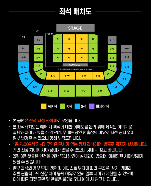 이번 2025 콘서트에서는 총 3종류의 좌석이 준비되어 있으며, 예매 순서에 따라 좋은 자리를 선택할 수 있습니다.