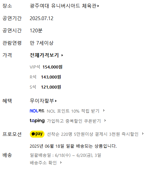 VIP석은 무대와 가장 가까워 아티스트와 눈을 마주칠 수 있을 만큼 생생한 감동을 선사합니다. 티켓은 인터파크 티켓에서 단독 예매 가능하며, 빠른 매진이 예상됩니다.